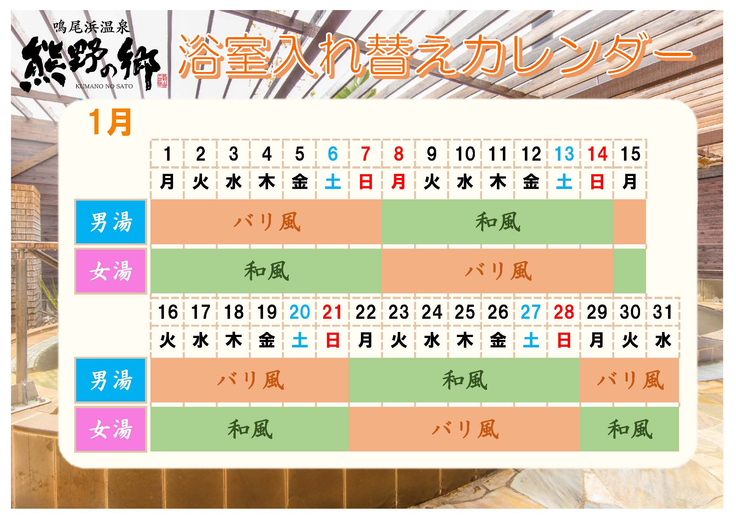 1月お風呂カレンダー