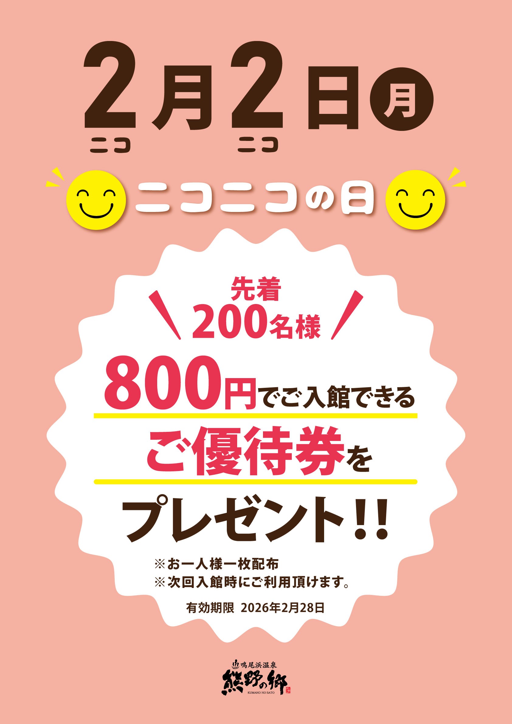 2月2日(月) ニコニコの日 先着200名様 プレゼント!!